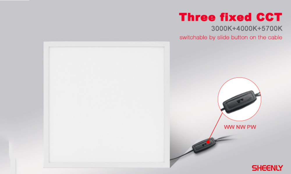Sheenly 3 Step Tunable White Panel has three fixed CCT 3000K+4000K+5700K, CCT can be switched by sliding button on the cable or a CCT tunable driver. This kind of panel aims to help you release the stock pressure, it's very attractive and functional. Only need to stock one panel, you can have all the three color temperatures for option.
