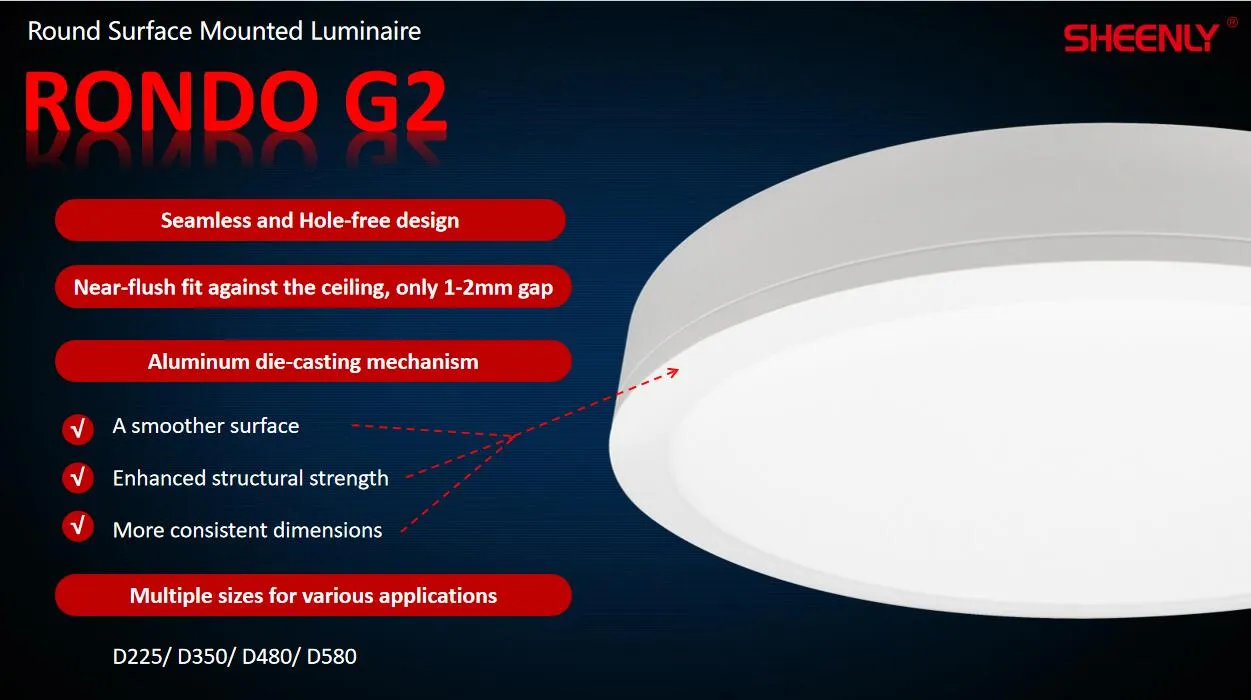 Rondo is surface-mounted panel light luminaire that has a timeless design and a rich list of features. With comprehensive sizes, 120lm/W efficiency, lumen packages, mounting versatilities, and addible features in the portfolio makes light planning task easy. It seemingly fit into most indoor applications that have walls and ceilings.